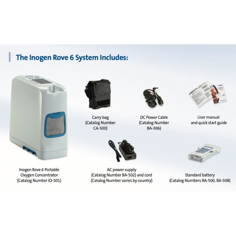 La batterie (simple : 8 cellules ou double : 16 cellules) de l’Inogen ROVE 6 peut être rechargée à domicile avec prise secteur ou lors de vos déplacements à l’aide du chargeur externe Inogen.